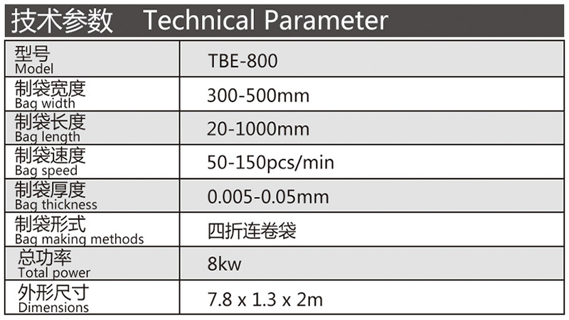 機(jī)器特性 此設(shè)備為生產(chǎn)連卷四折平底垃圾袋的專用設(shè)備,單通道高速無拉伸操作簡(jiǎn)便,底封好,收卷整齊,個(gè)數(shù)準(zhǔn)確,手動(dòng)手卷。此設(shè)備采用全鋼板一體而成,用電220v照明電即可。